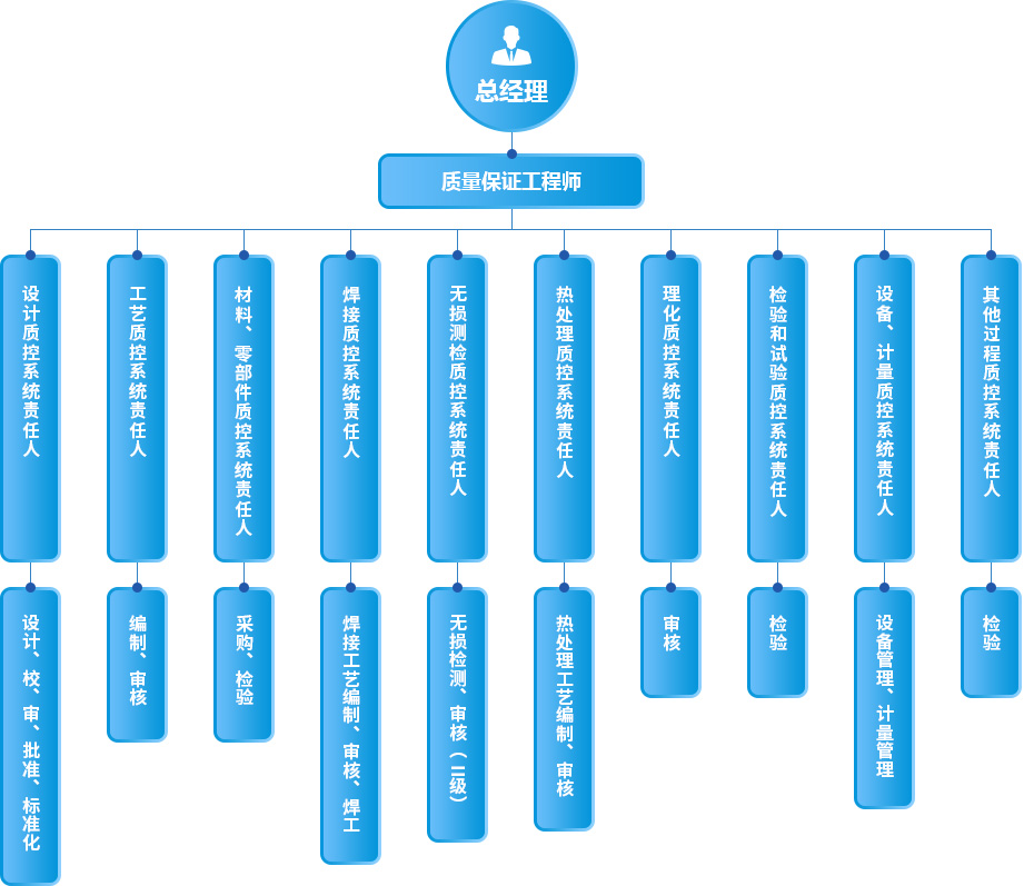 質(zhì)量控制貫徹產(chǎn)品制造的各個(gè)環(huán)節(jié),包括設(shè)計(jì),工藝,采購(gòu),檢驗(yàn),焊接,組裝,NDT,熱處理,試壓,包裝等等, 各工序均檢驗(yàn)合格方可進(jìn)入到下一道工序,使每個(gè)環(huán)節(jié)的生產(chǎn)質(zhì)量均得到有效控制,產(chǎn)品質(zhì)量符合國(guó)家標(biāo)準(zhǔn)及客戶要求;